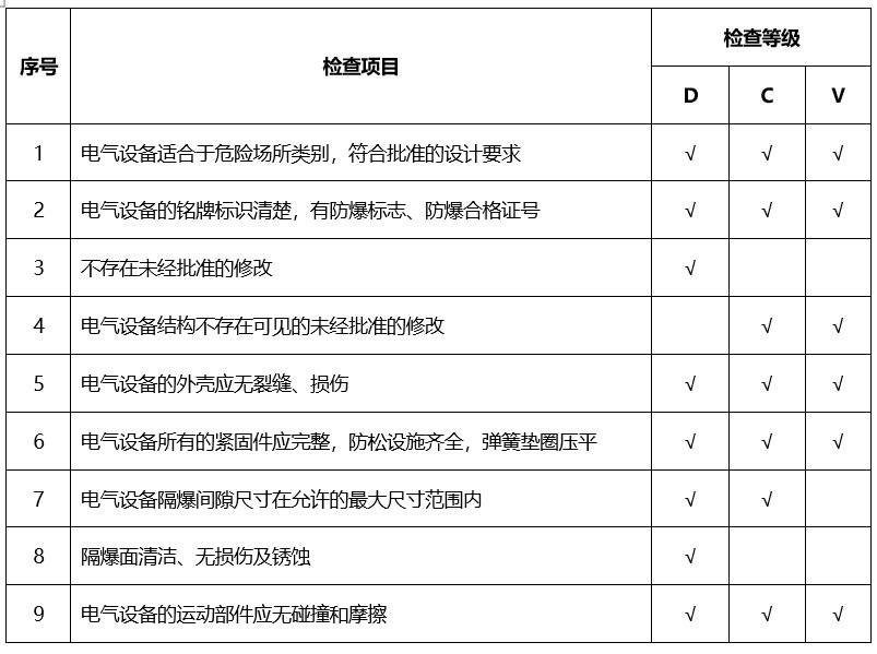 防爆電氣設(shè)備的廣泛應(yīng)用較大程度阿凡提防爆地降低了爆炸性事故的發(fā)生概率,對于使用方來說,正確使用并定期檢查在用防爆電氣設(shè)備以保持以防爆性能是非常有必要。那么,使用中的防爆電氣設(shè)備需要做哪些防爆檢測項(xiàng)目呢?